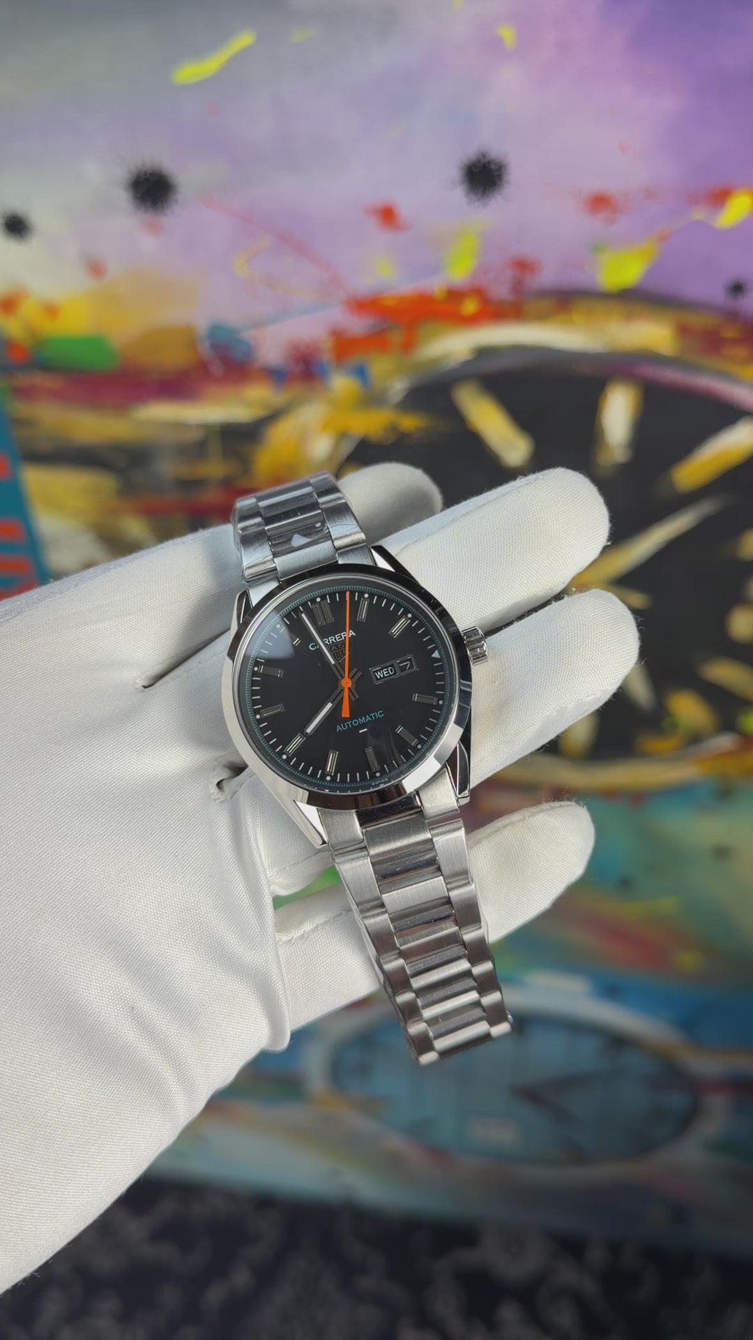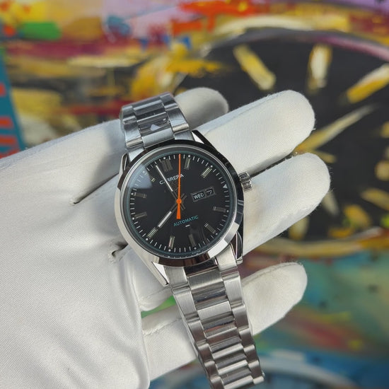 Silver with black dial