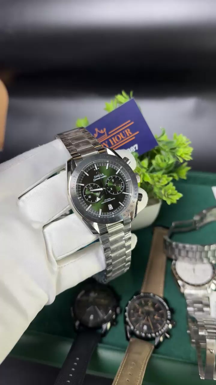 Silver with green dial