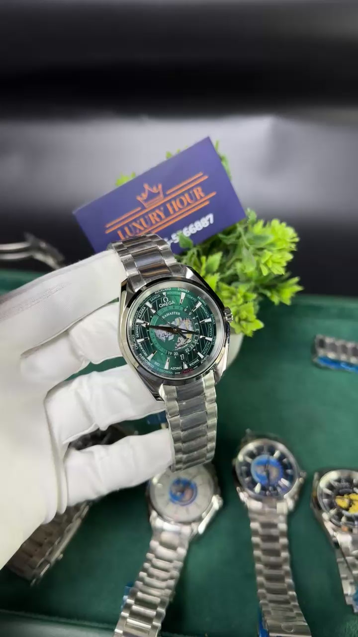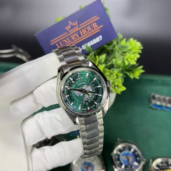 Silver with green dial