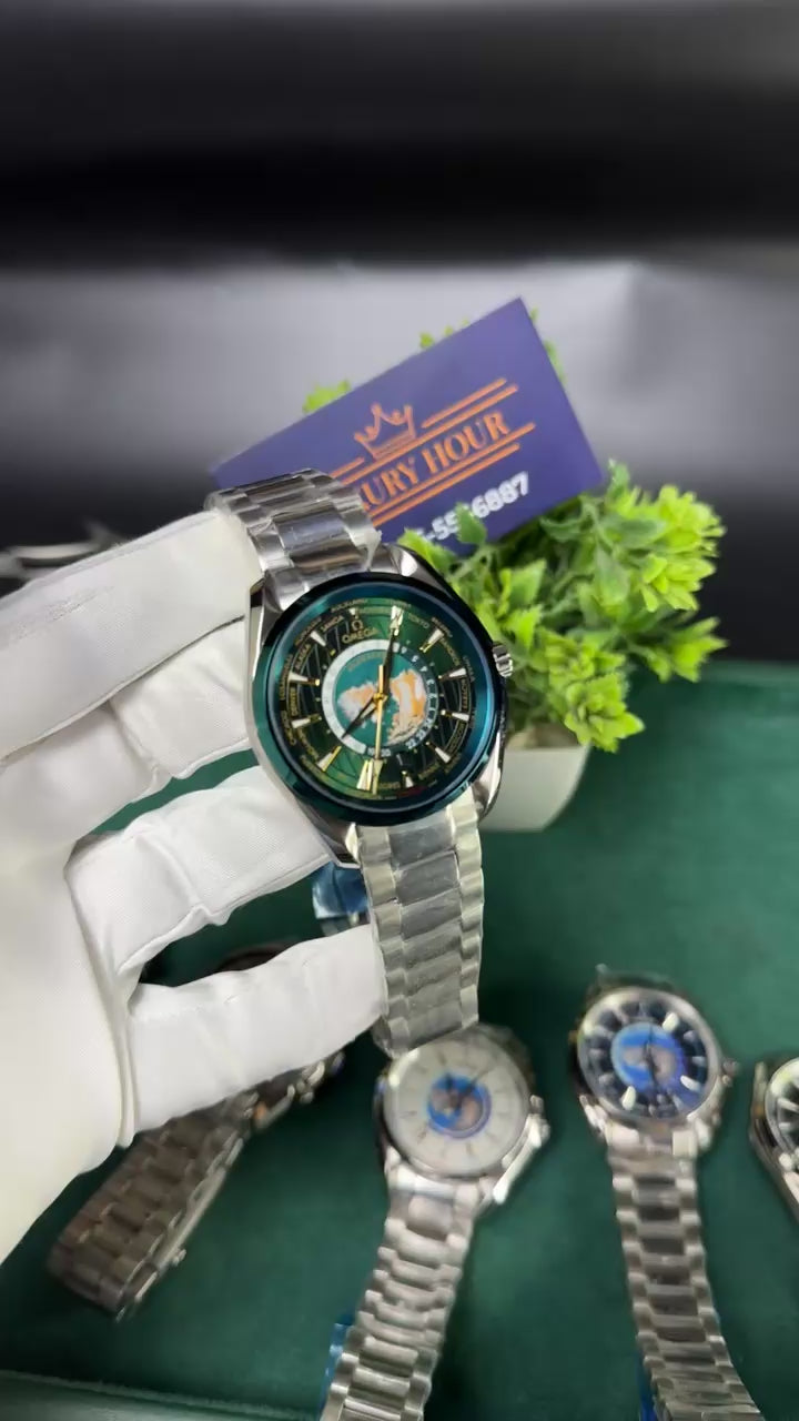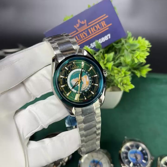 Silver with green dial