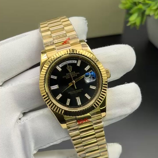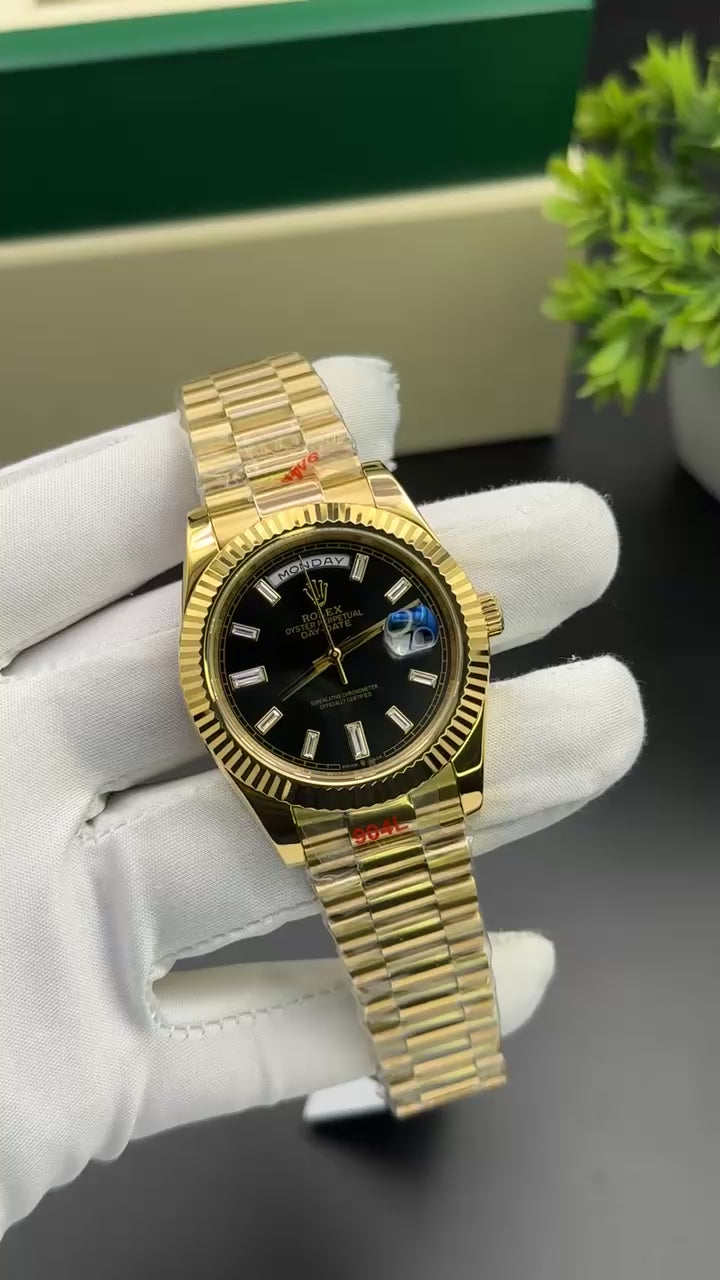 Yellow gold with black dial